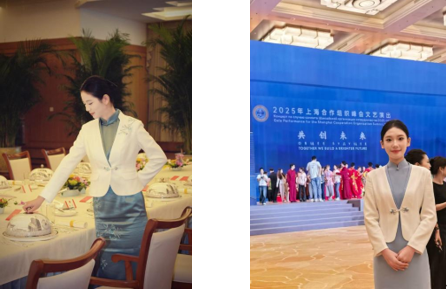 值得一提的是,本次参赛的巴灵姝、张梦源两位同学不仅在赛场上展现出过硬的专业能力,更在社会实践中积累了丰富的服务经验。此前,她们凭借出色的综合素质成功入选上合组织天津峰会志愿者团队。在上合组织峰会服务期间,两人以严谨的态度、细致的服务与良好的沟通能力,圆满完成了各项任务,既展现了我校学子的良好精神风貌,更将课堂所学的酒店管理知识与实际服务场景深度融合。而这份宝贵的“实战积累”,也为她们此次在竞赛中从容应对各类模拟场景、充分展现专业实力奠定了坚实基础。
