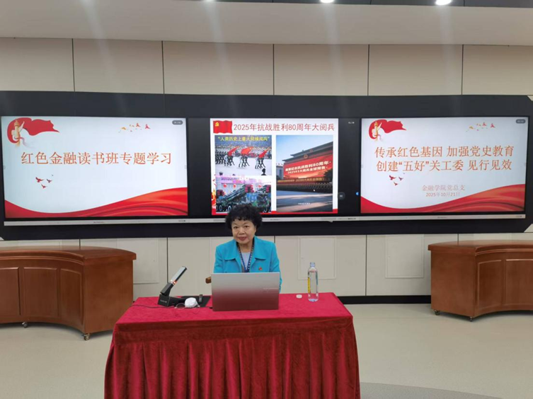 为深入学习贯彻习近平新时代中国特色社会主义思想特别是习近平总书记关于关心下一代工作的重要指示批示精神,纪念中国人民抗日战争暨世界反法西斯战争胜利80周年,推进党史学习教育,激励青年学子传承红色精神,勇担时代使命,按照学校坚持党建带关键的要求,为充分发挥“五老”在思想政治教育方面的独特优势和作用,党委组织部联合金融学院党总支于10月21日特邀天津市延安精神研究会副秘书长、天津医科大学关工委常务副主任章军凤教授开展题为《五星红旗,我为你骄傲》的主题讲座。2024级入党积极分子和入党申请人踊跃参会,共同聆听了这堂饱含爱国主义情怀的思政课。