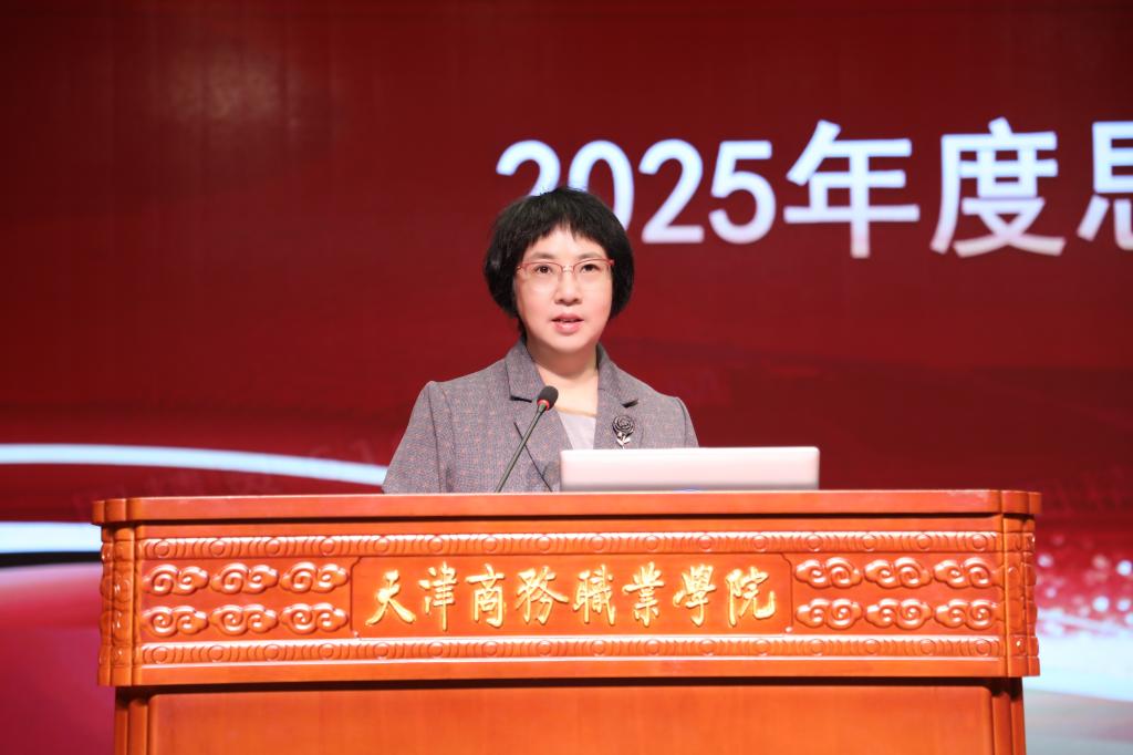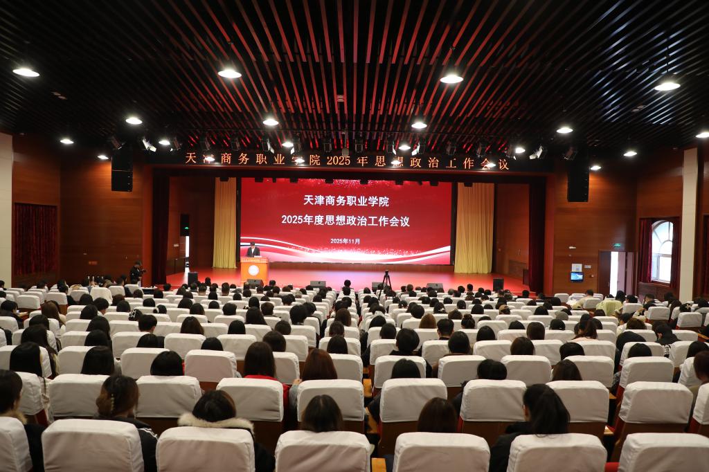 为深入学习贯彻习近平新时代中国特色社会主义思想,全面贯彻落实党的二十大和二十届二中、三中、四中全会精神,抓好《中国共产党思想政治工作条例》的学习宣传和贯彻落实,充分发挥思政工作的引领作用,弘扬中华优秀传统文化、守护发扬津派文化,推动学校思想政治工作不断开创新局面。11月4日,天津商务职业学院组织召开2025年度思想政治工作会议,对2025年学校思想政治工作情况进行总结、探讨交流,并谋划部署2026年思政工作的重点任务。全体校领导、中层干部、专兼职思政课教师及辅导员、学生代表参会。党委副书记黄向荣主持会议。